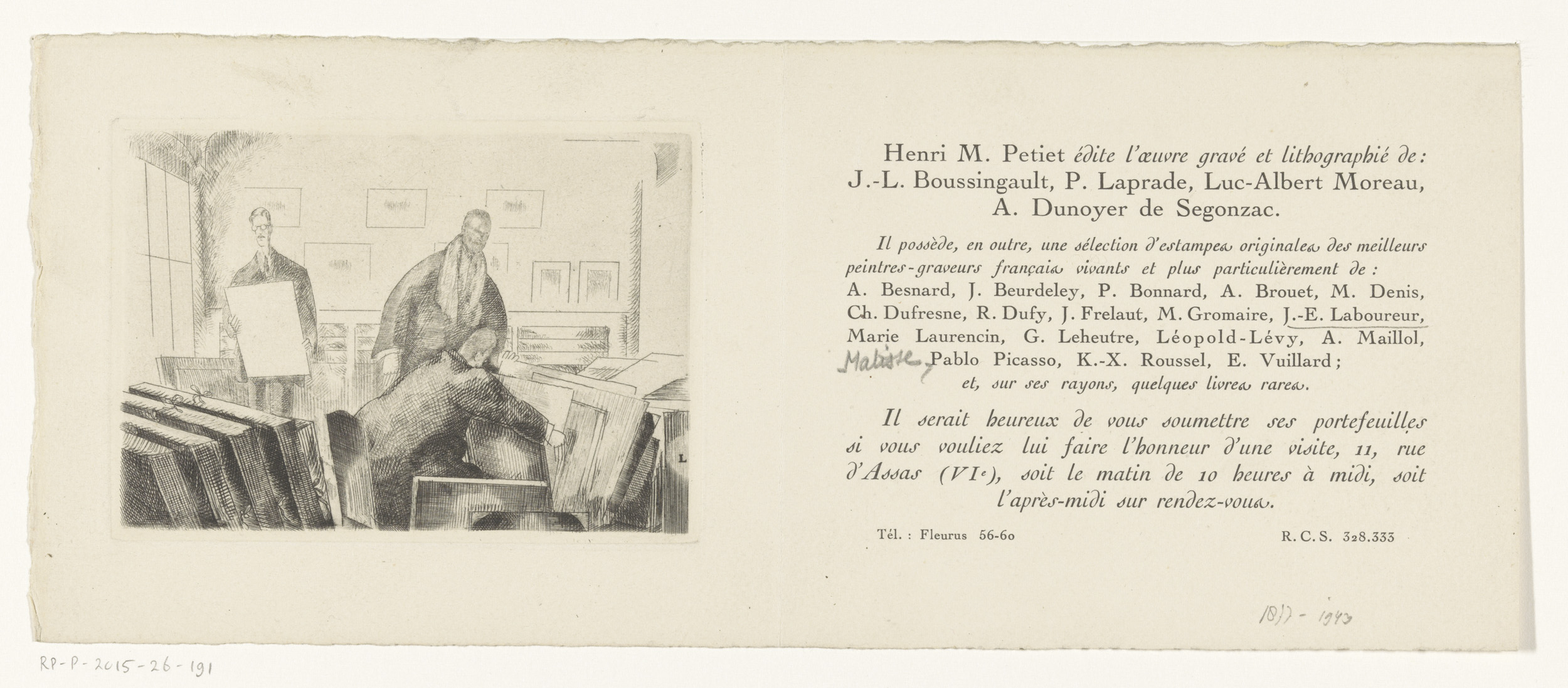 Uitnodiging van kunsthandel Henri M. Petiet te Parijs