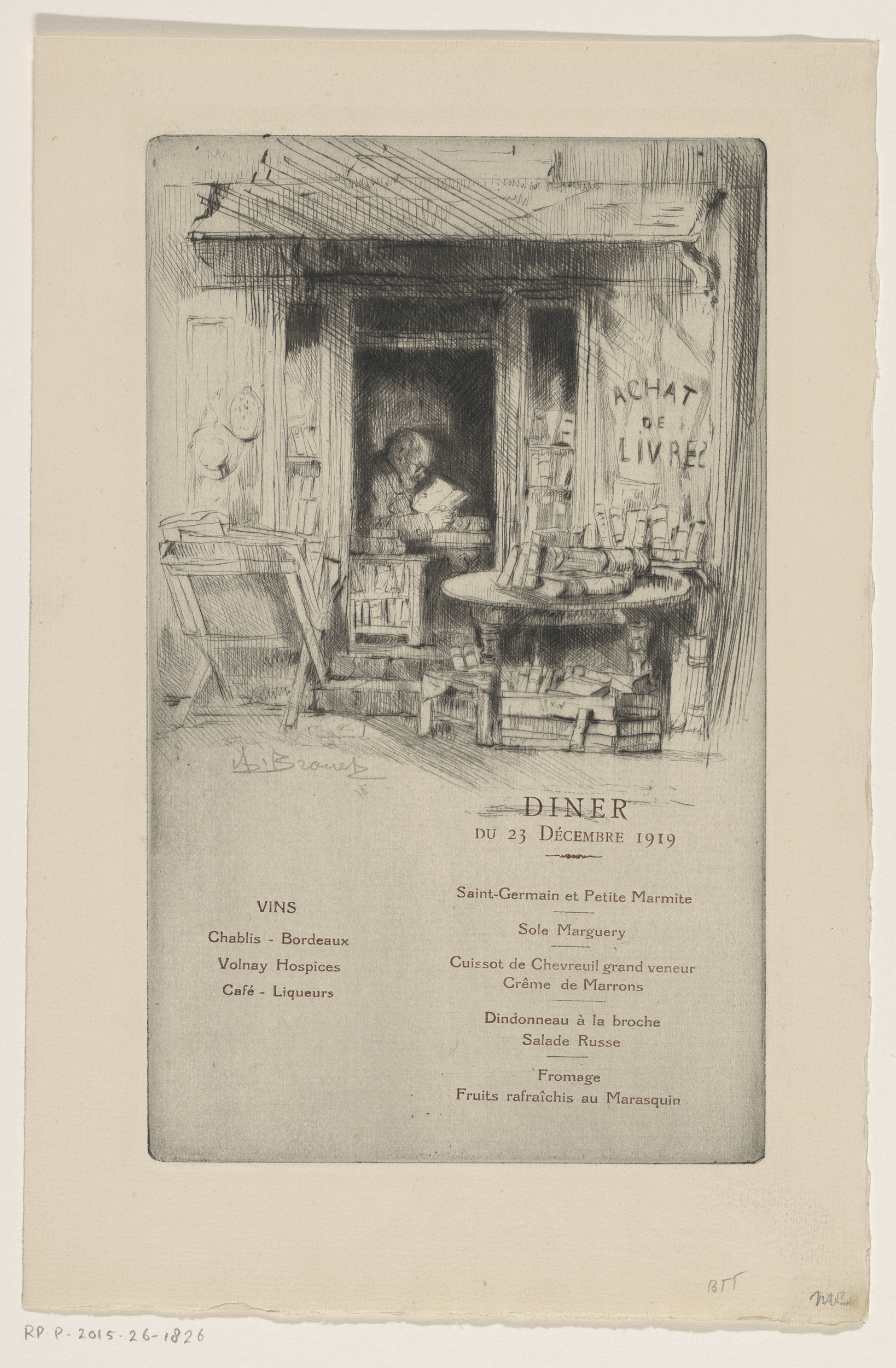 Menukaart voor Les Cent bibliophiles