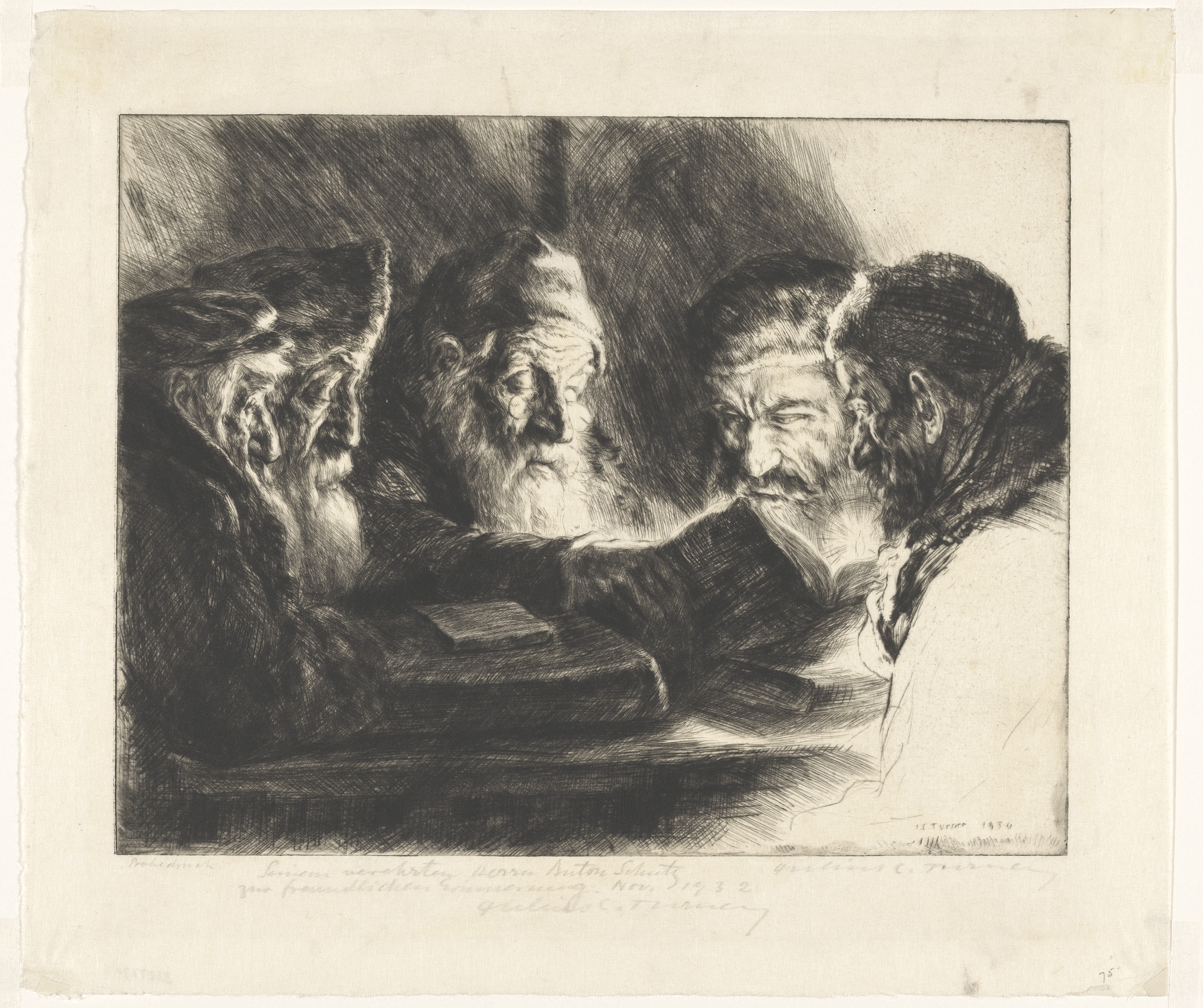 Vijf lezende joodse mannen