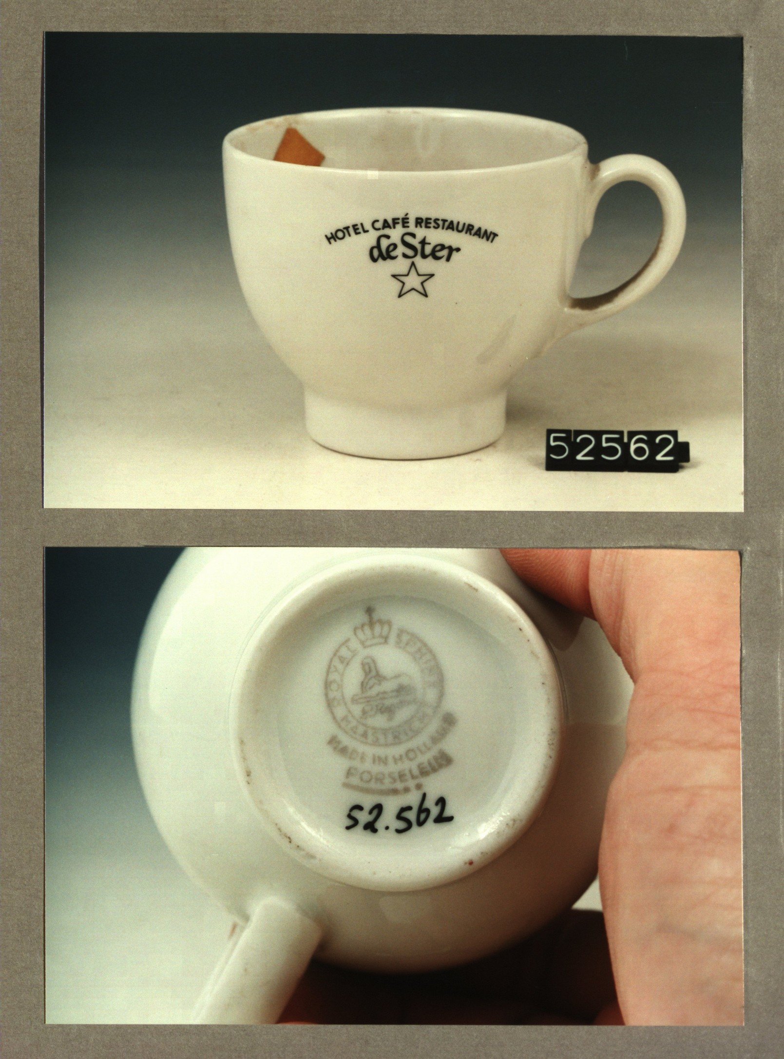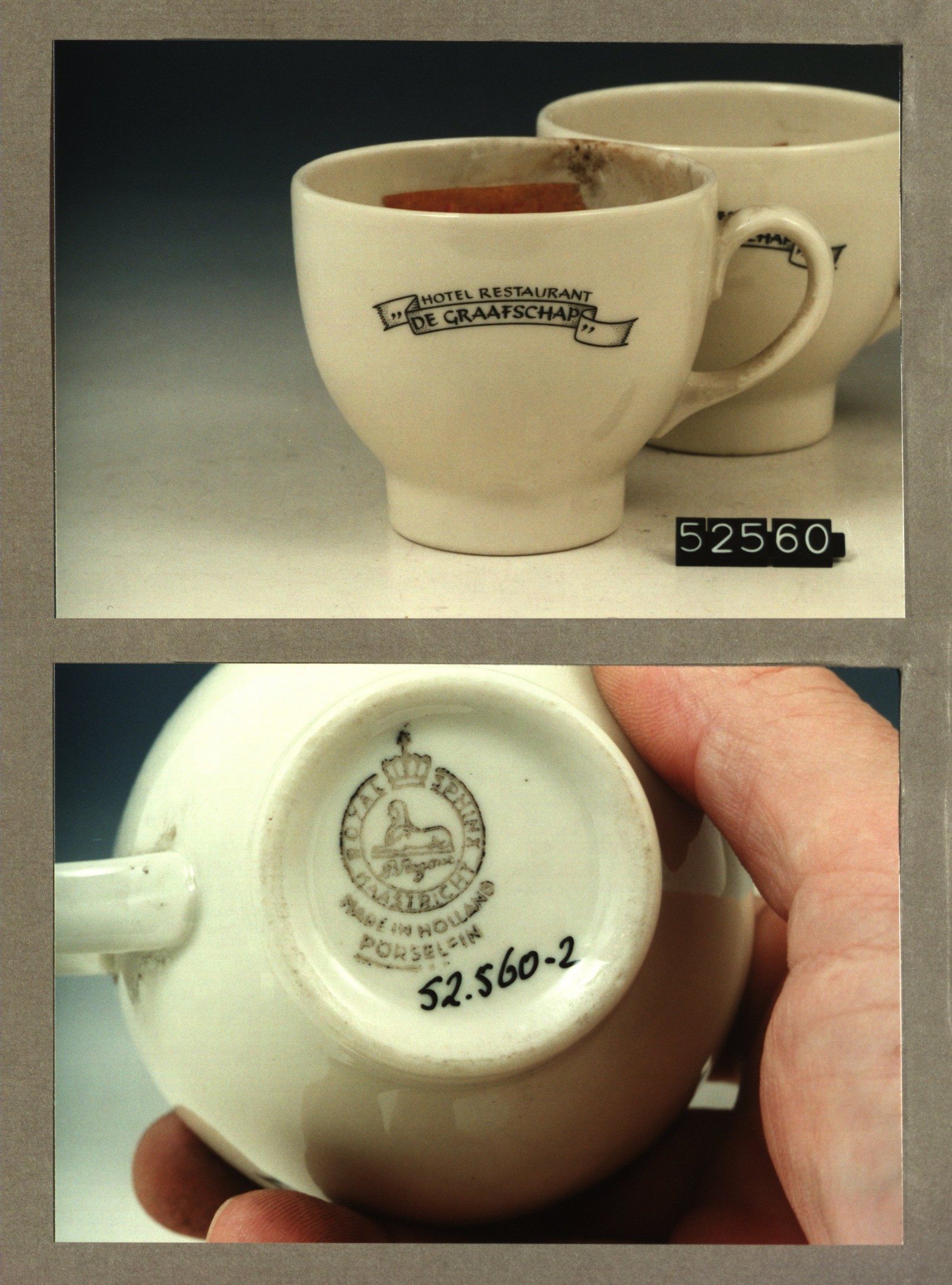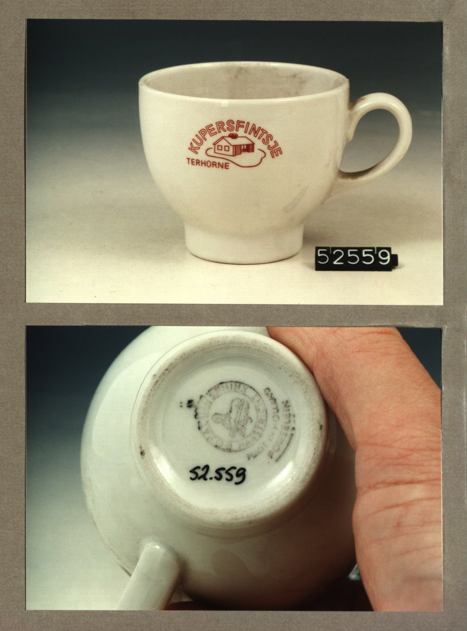 Kop met opschrift, model SPH met decor Groeskamp caf...