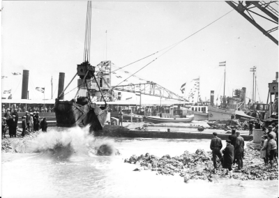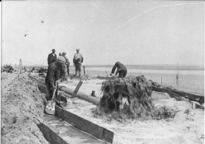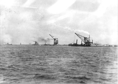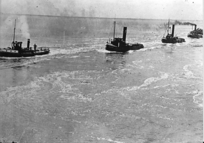 Stoomsleepbootjes bij de aanleg van de Afsluitdijk
