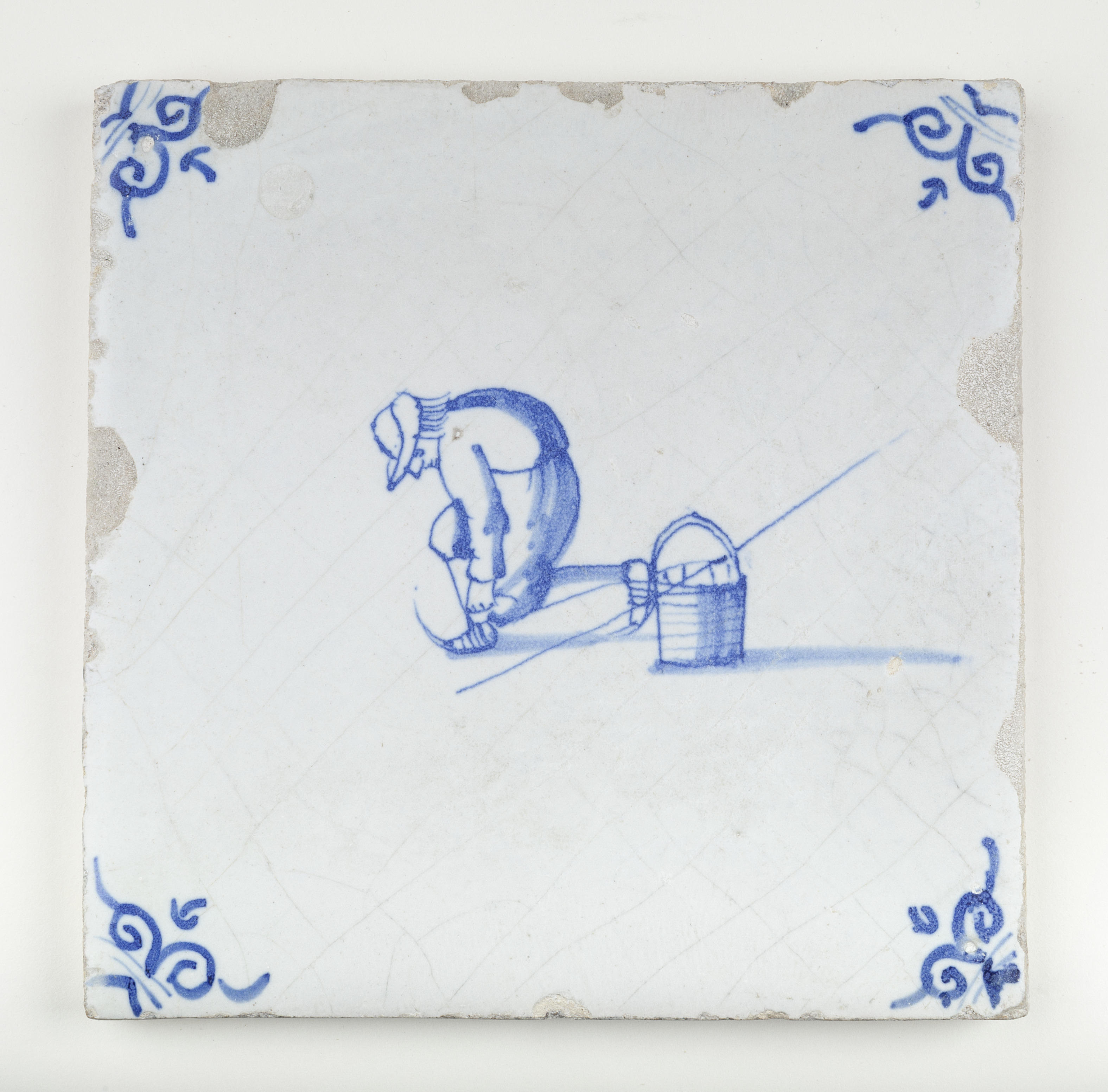 Tegel met een afbeelding van een man achter een baks...