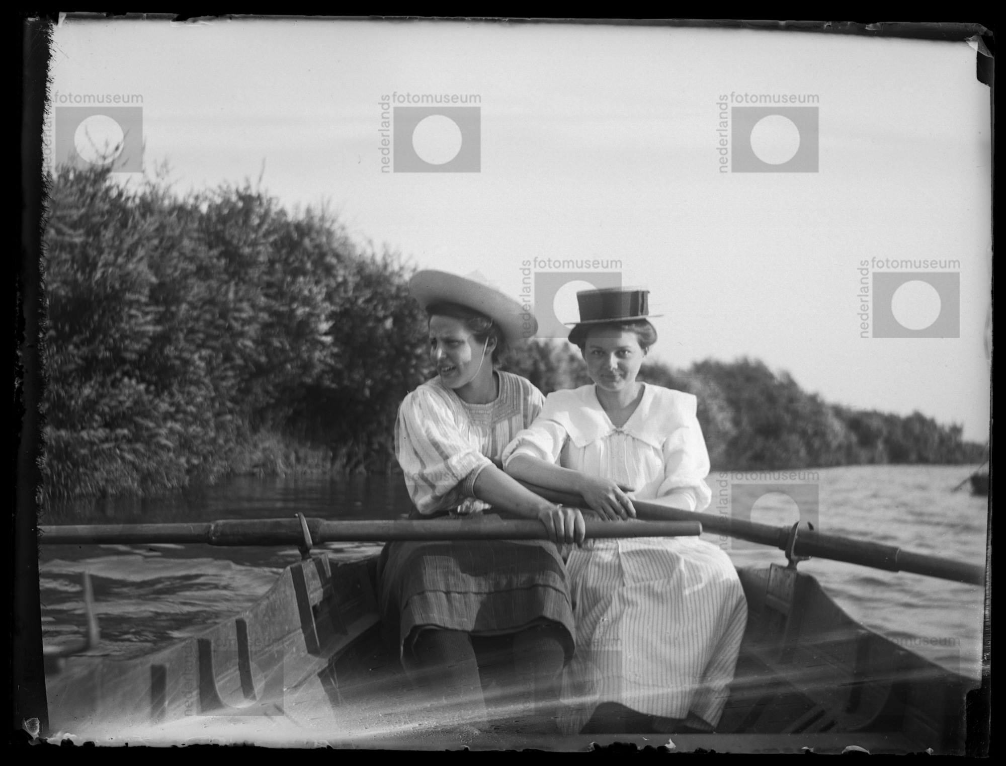 Studioportret van twee vrouwen, de linker ten voeten...