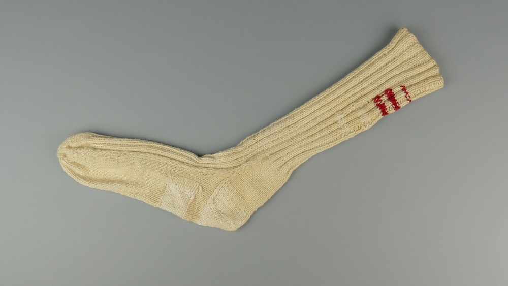 katoenen sok gebreid door D. van Wijk op de huishoud...