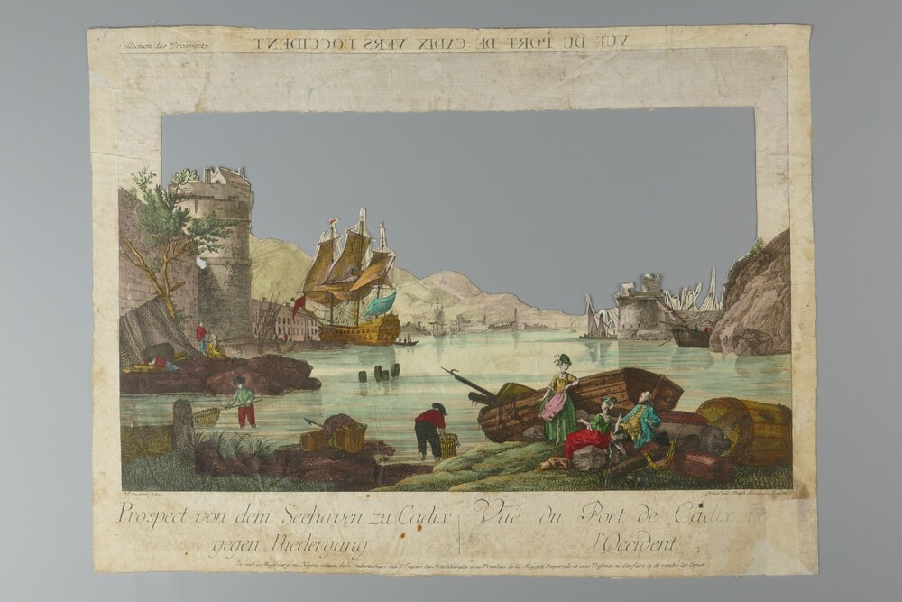opticaprent, voorstellend Gezicht op de haven van Ca...