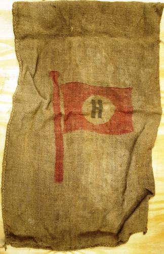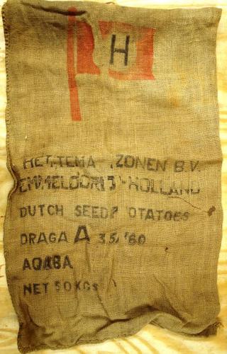 Zak van jute gebruikt om aardappelen in op te slaan ...