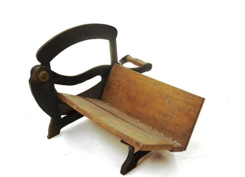 Broodsnijapparaat van hout en metaal gebruikt om bro...