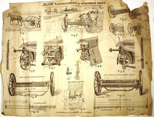 Wandplaat van papier met afbeeldingen van typen ploe...