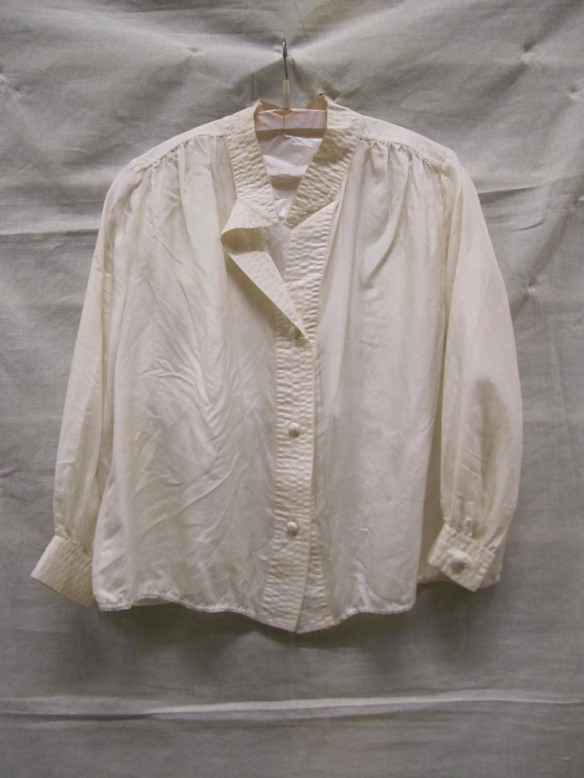 Blouse van witte zijde met ronde halslijn, schouders...