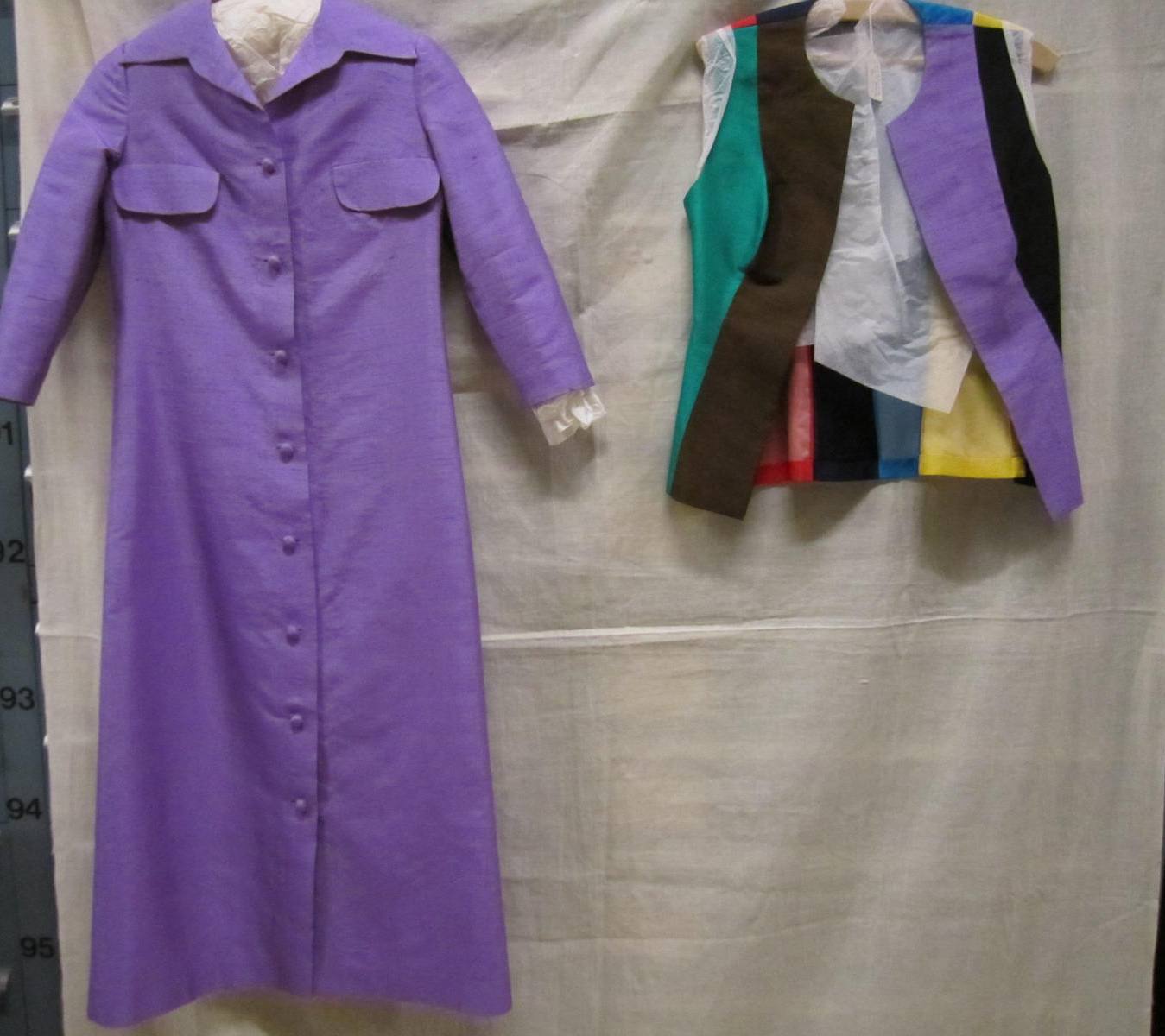 Ensemble: robe-manteau van lila thaizijde en vestje ...