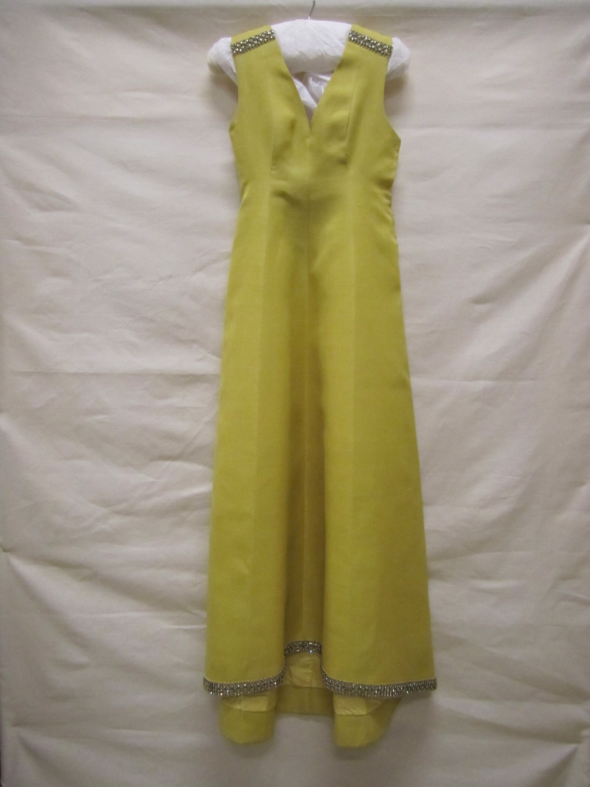Avondjurk van geel gazar (gaas-achtig weefsel) in en...