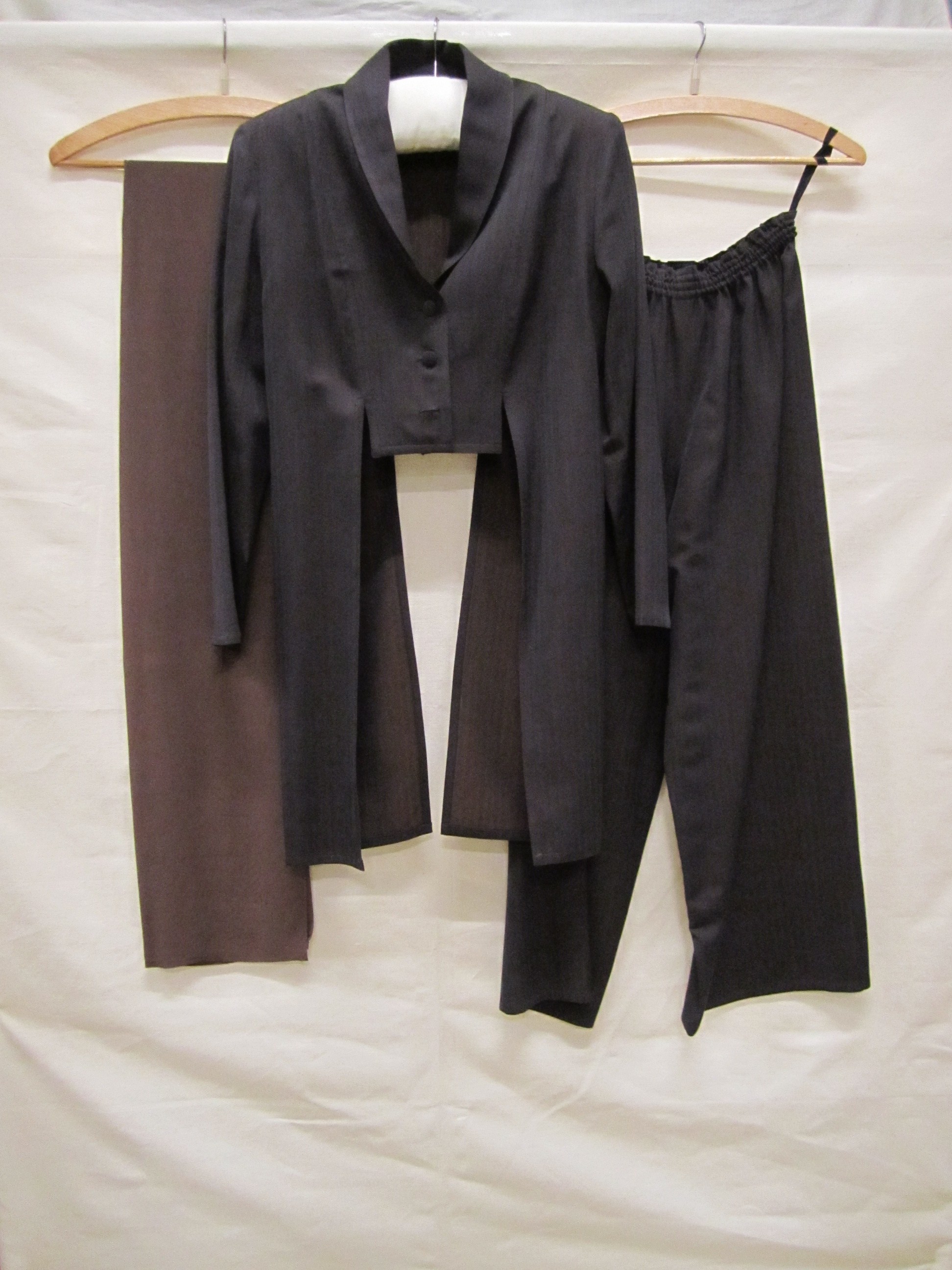 Broekpak of ensemble van bruin synthetisch weefsel g...