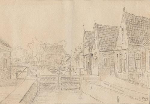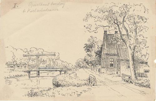 Tekening getiteld: „Bij de Hege Brêge”