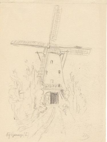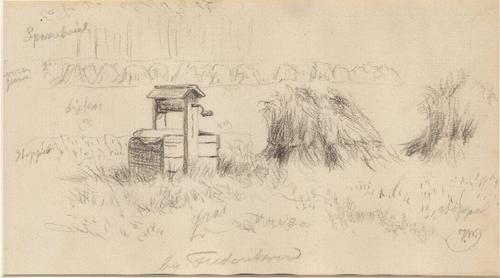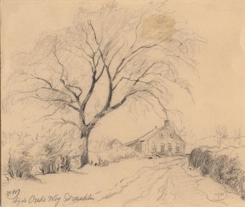 Tekening met als titel "bij de Oudeweg"