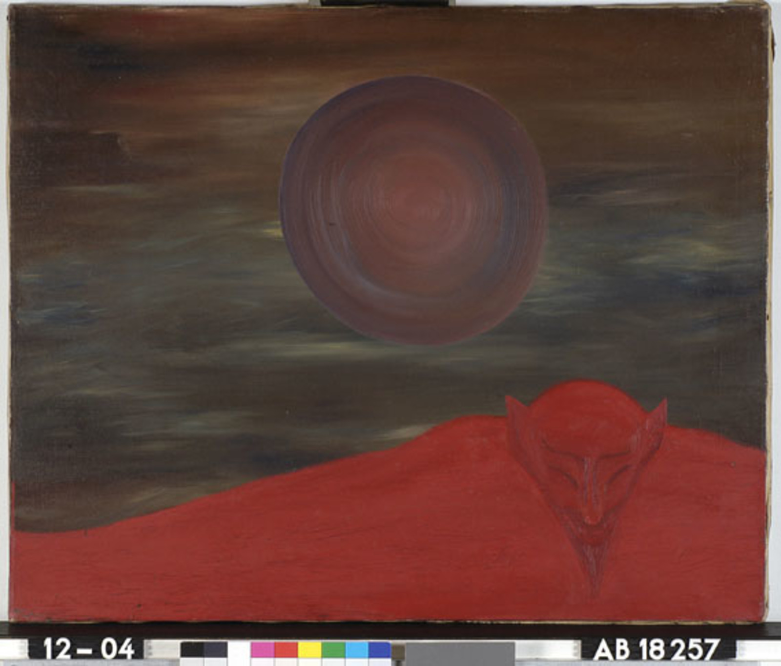 Kleurschets met helderrood met figuren/portretten