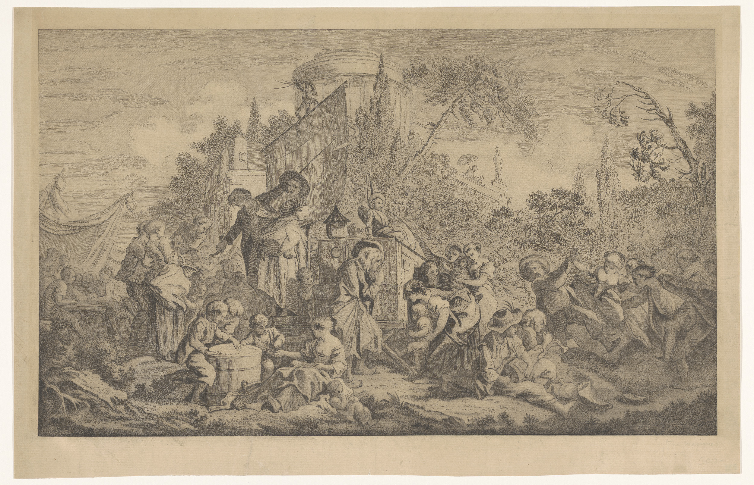 Naakte vrouw met een fakkel in haar hand op een druk...