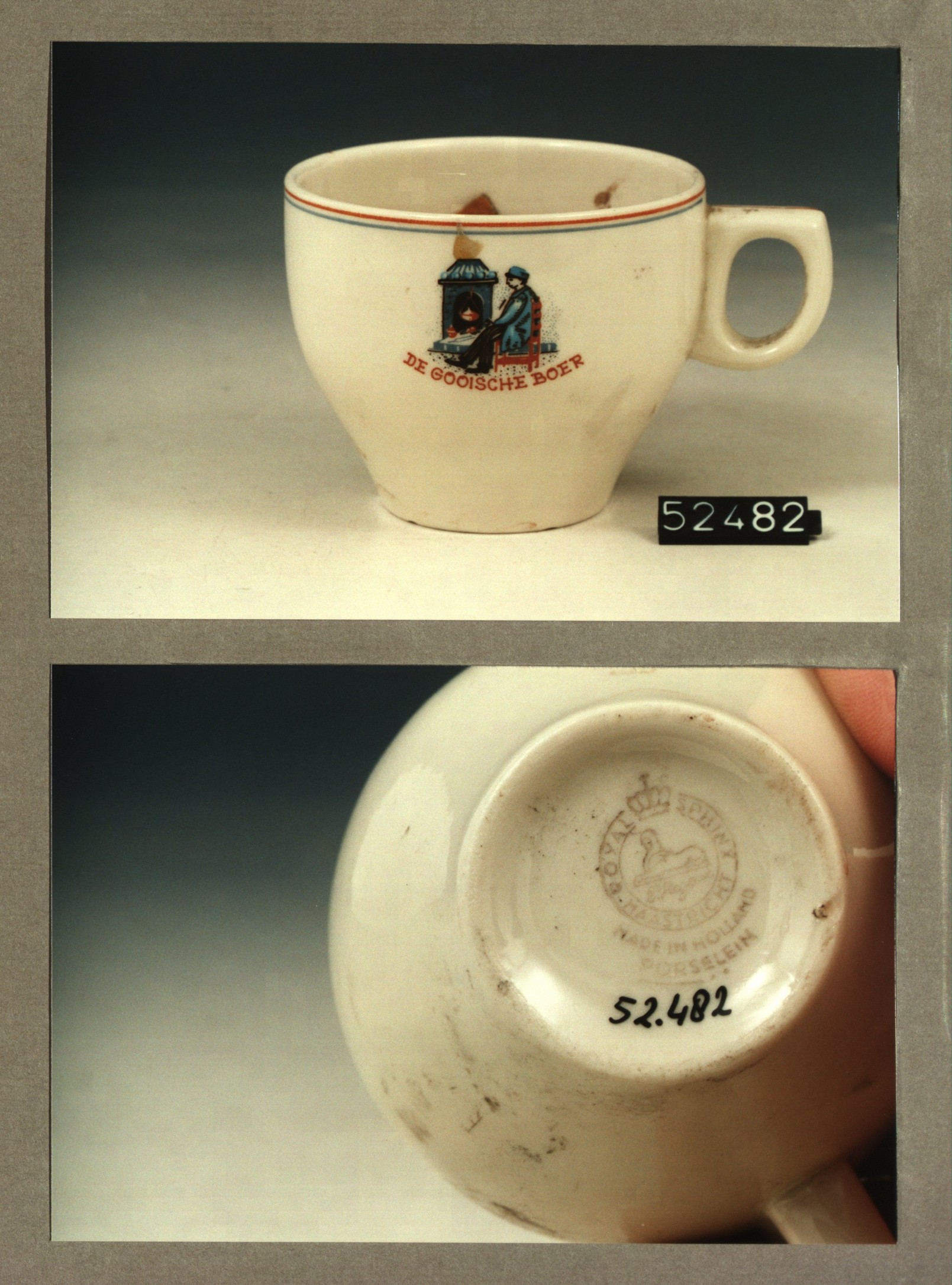 Kop met opschrift, model SPH met decor De Gooische boer
