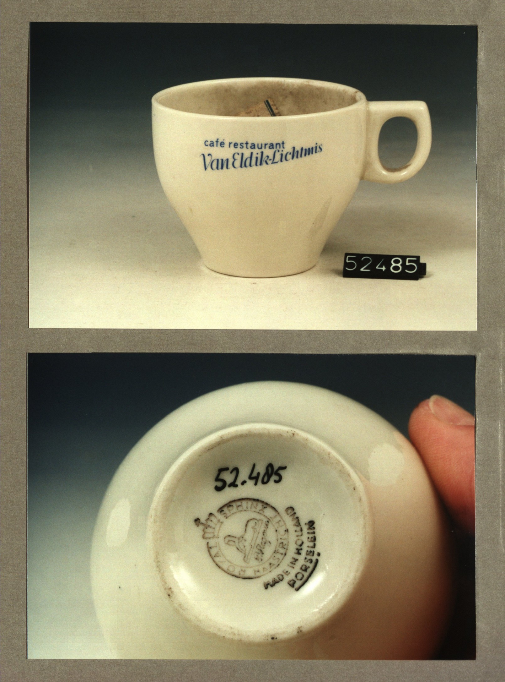 Kop met opschrift, model SPH met decor van Eldik Lic...