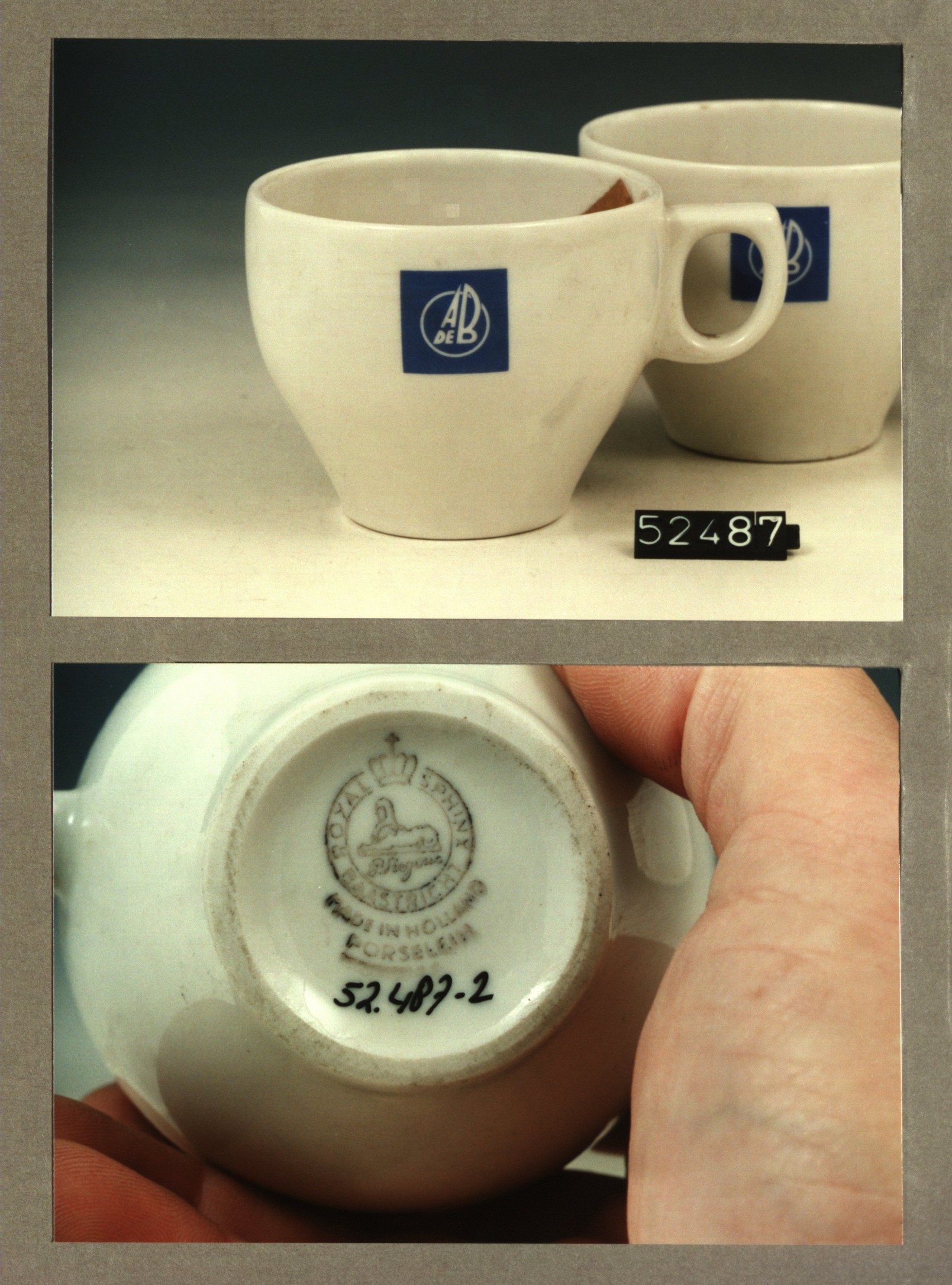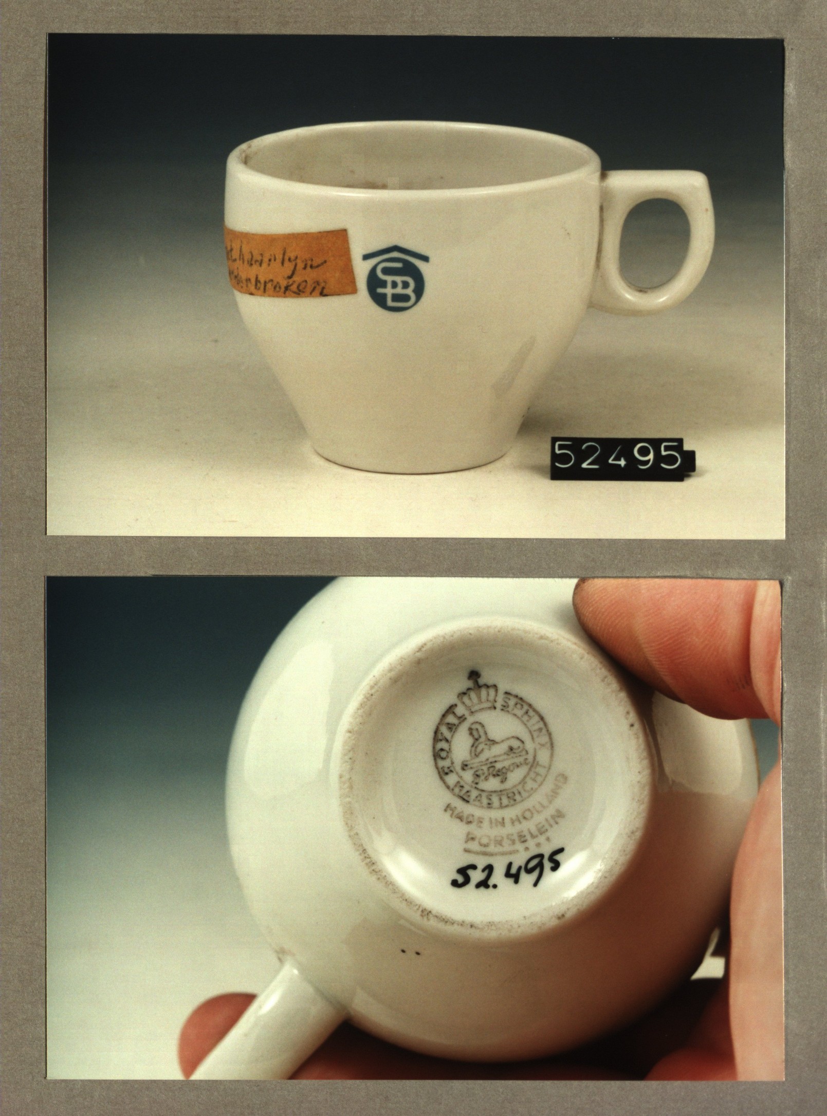Kop met opschrift, model SPH met decor A de B