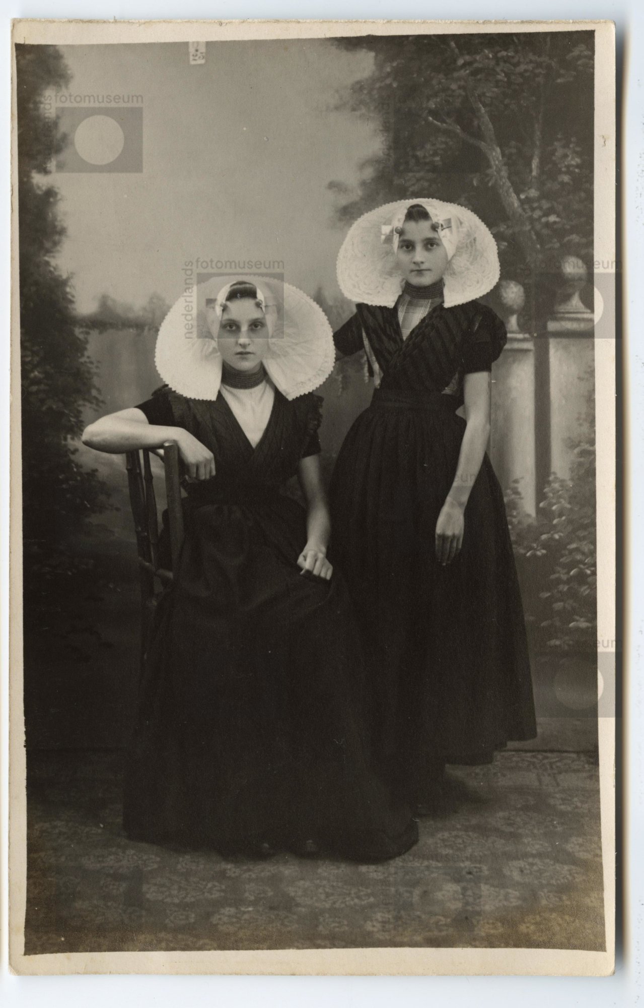 Ansichtkaart, dubbelportret van vrouwen in Zuid-Beve...