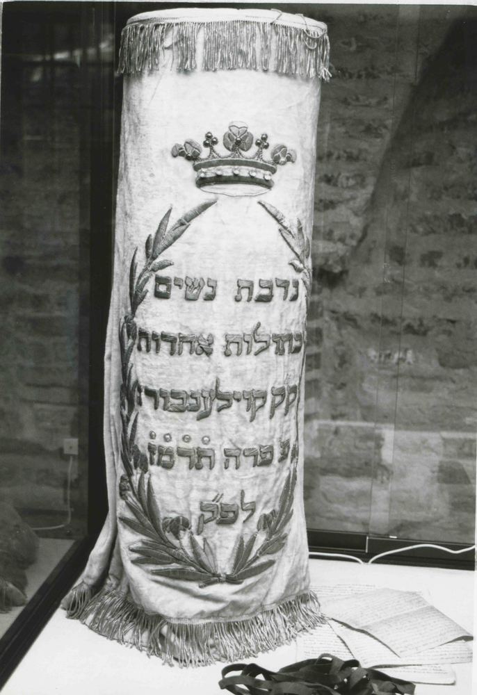 Foto, voorstellende Thoramantel uit synagoge te Cule...