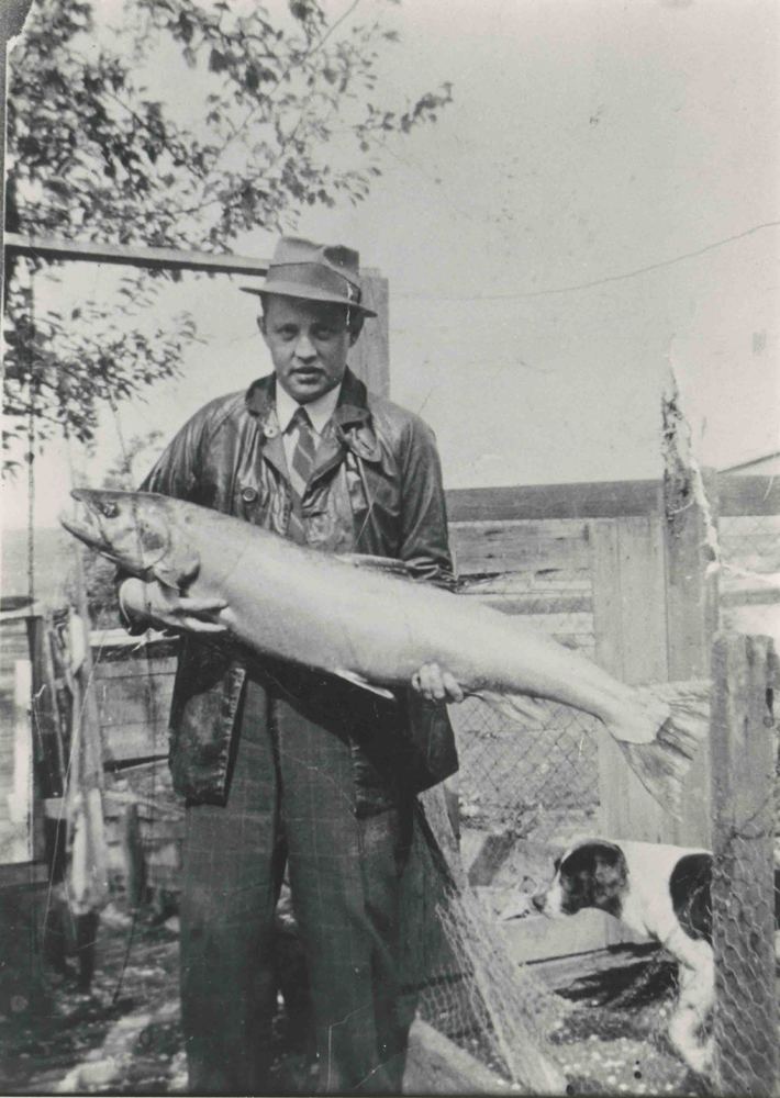 Foto, voorstellende C.W. Dresselhuijs met zalm, circ...