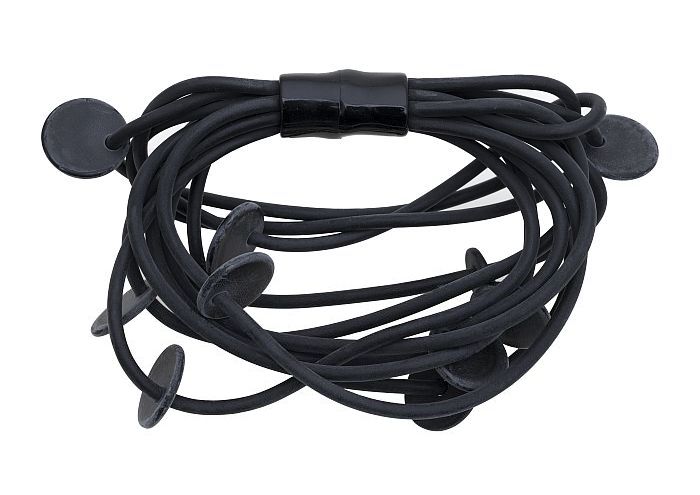 Zwarte armband van rubberen draden en platte rondjes