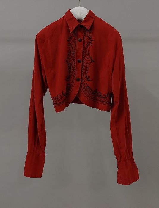 Rode blouse met zwarte stiksels