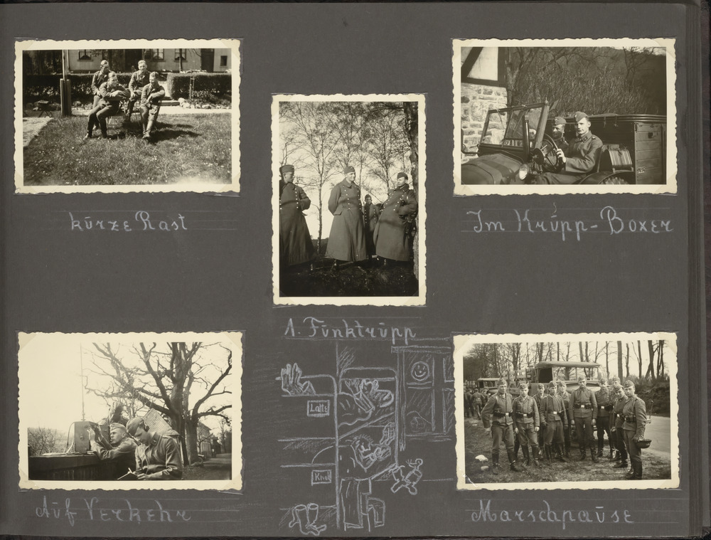 Luftwaffe militairen tijdens pauze, in een Krupp vra...