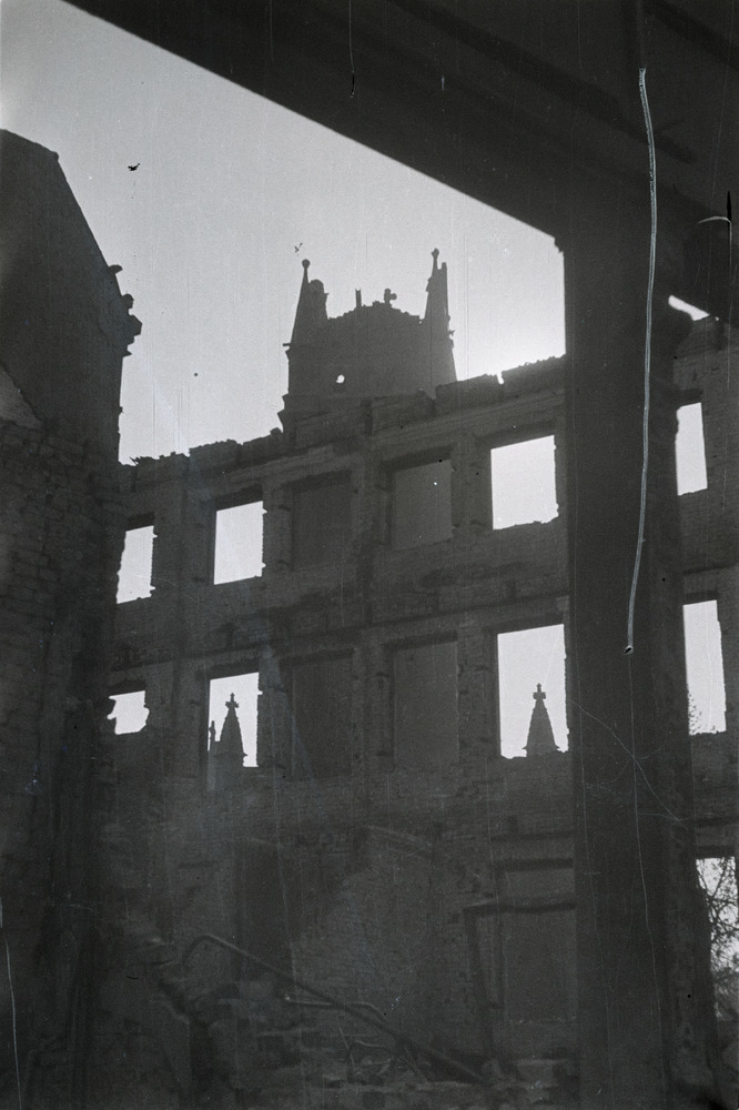 Restanten van gebouwen na bombardementen en branden,...