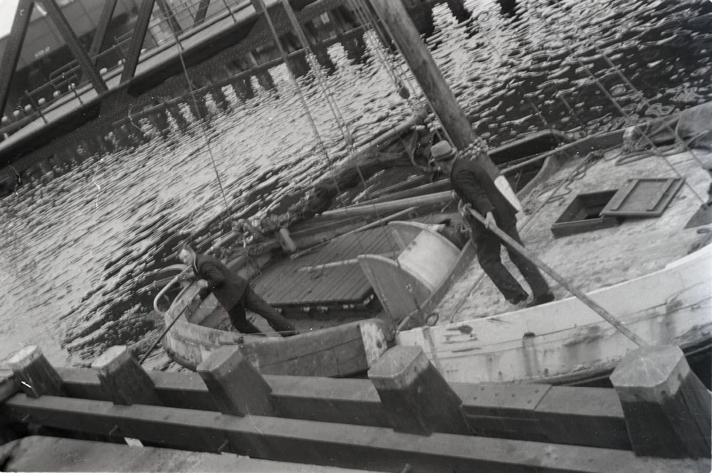 Twee mannen maken hun schip gereed voor vertrek.
