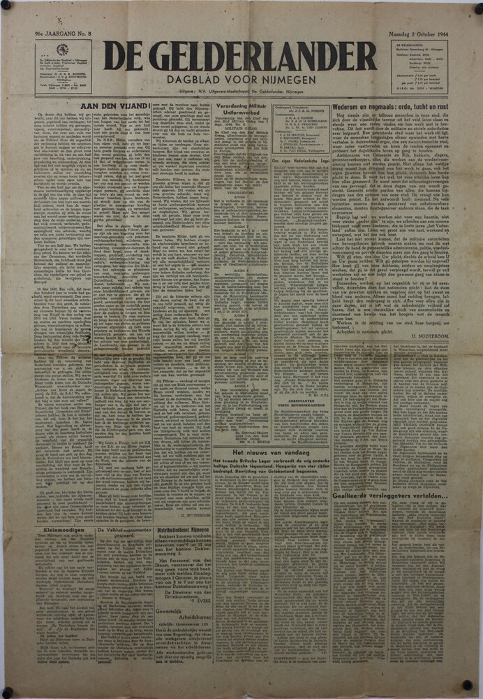De Gelderlander oktober t/m december 1944