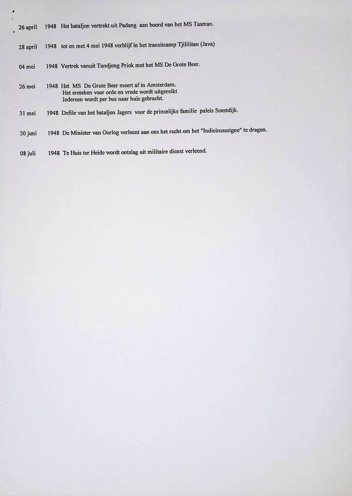 Lijst met chronologie 1ste bataljon Jagers 1945 - 1948