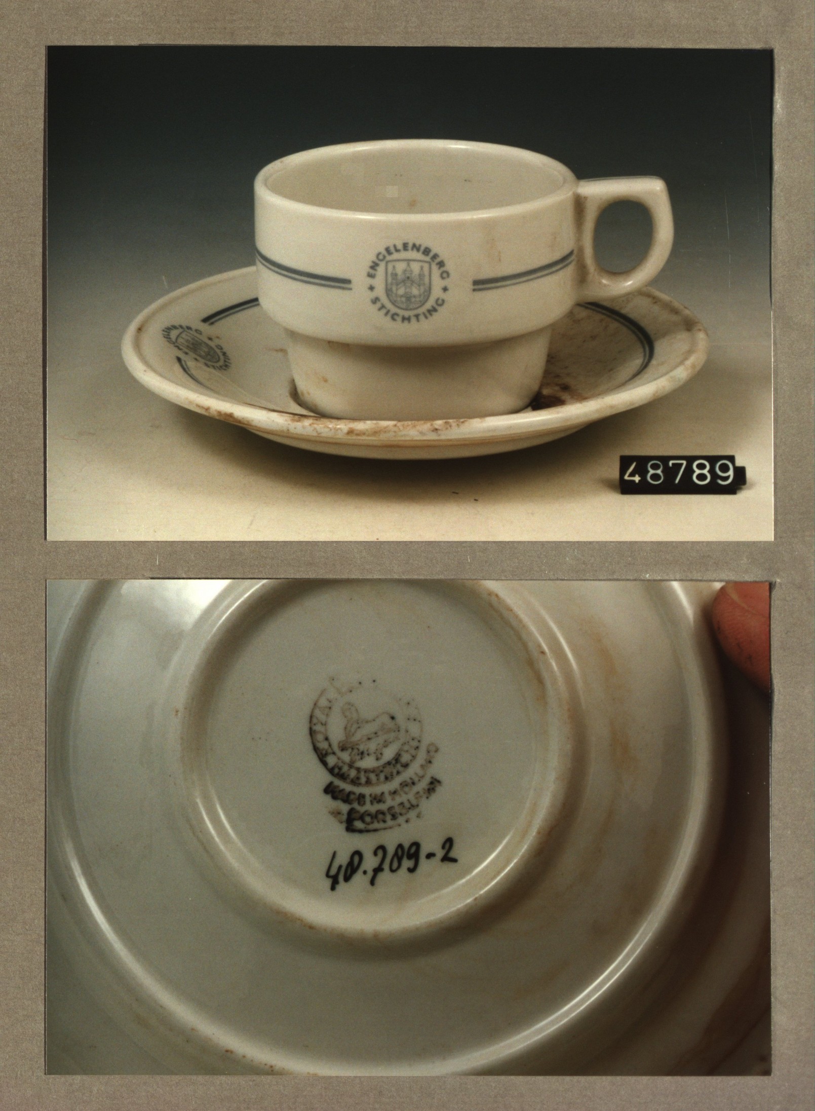 Kop en schotel, model Kop:U/Schotel:H met decor Enge...