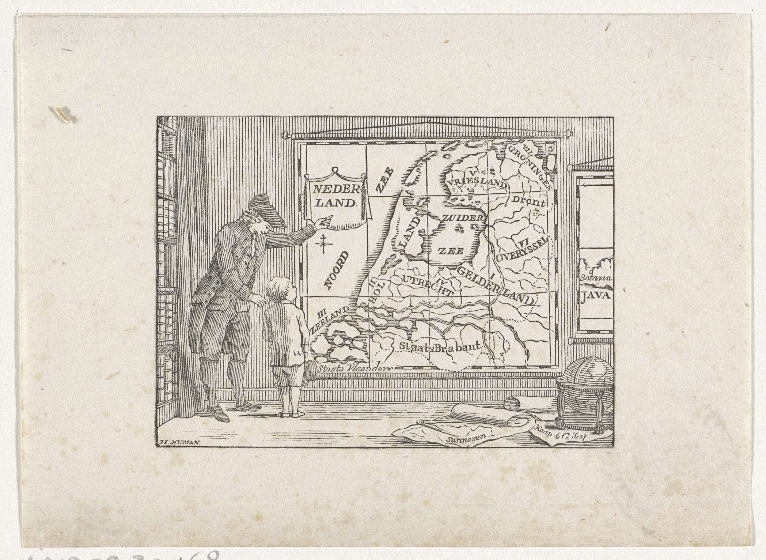 Man leert een jongen over de topografie van Nederlan...