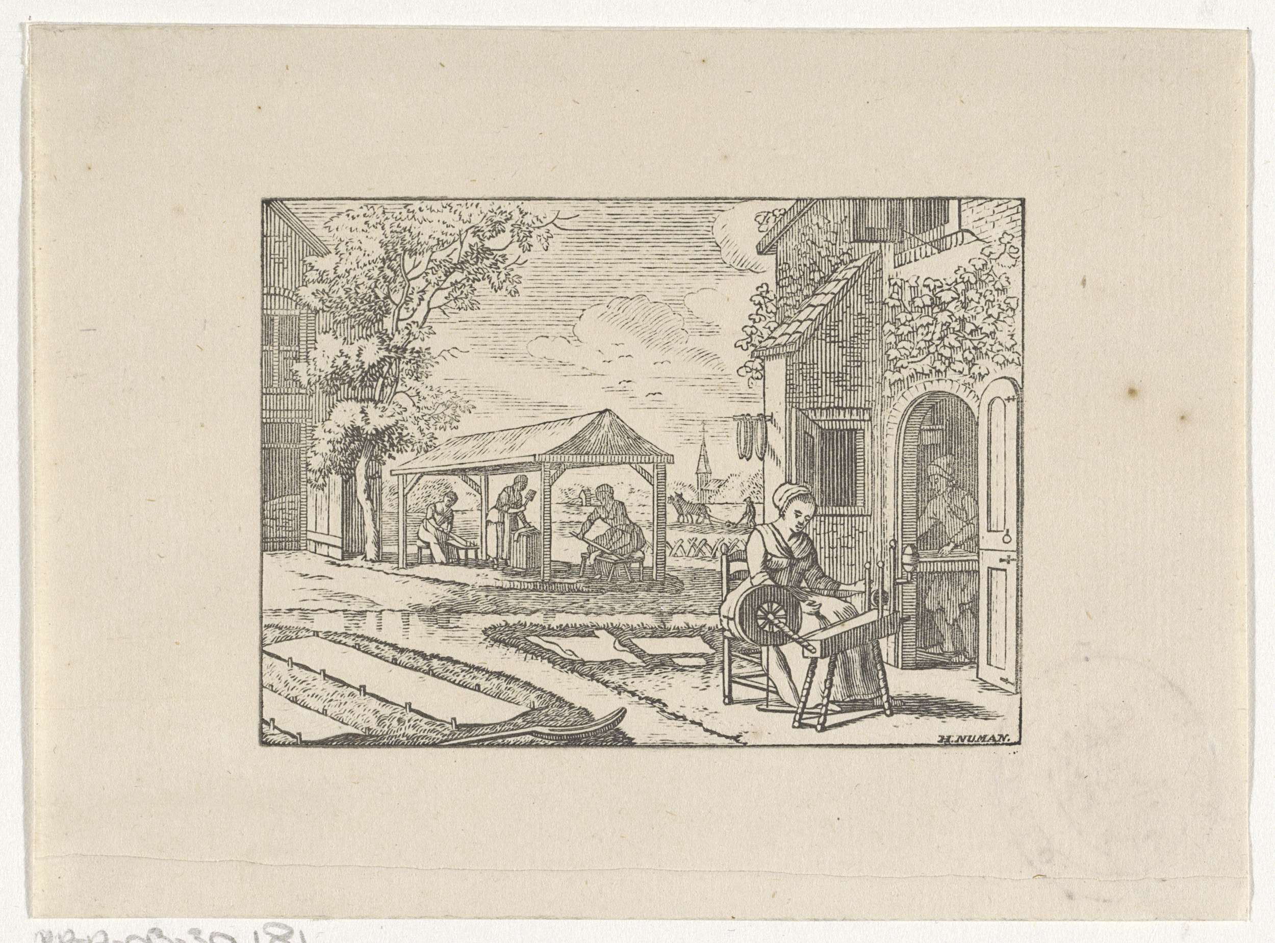 Figuren in een papierwerkplaats aan het werk