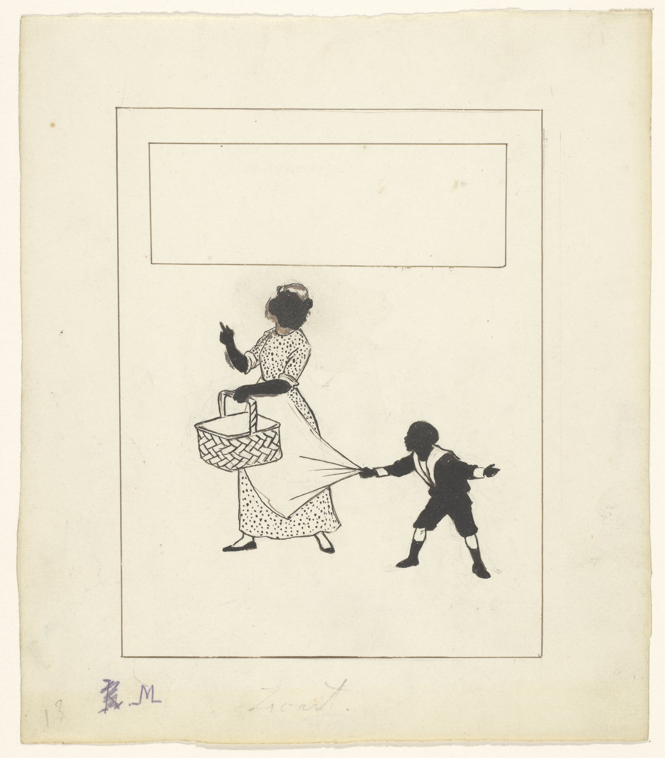 Jongen trekt aan het schort van een vrouw