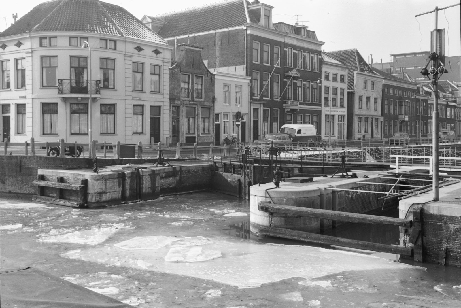 Complex van sluizen met kolk, kademuren en twee bruggen