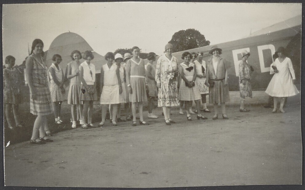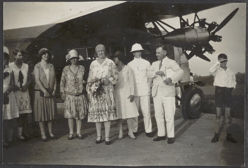 Europees gezelschap op het vliegveld bij een vliegtuig