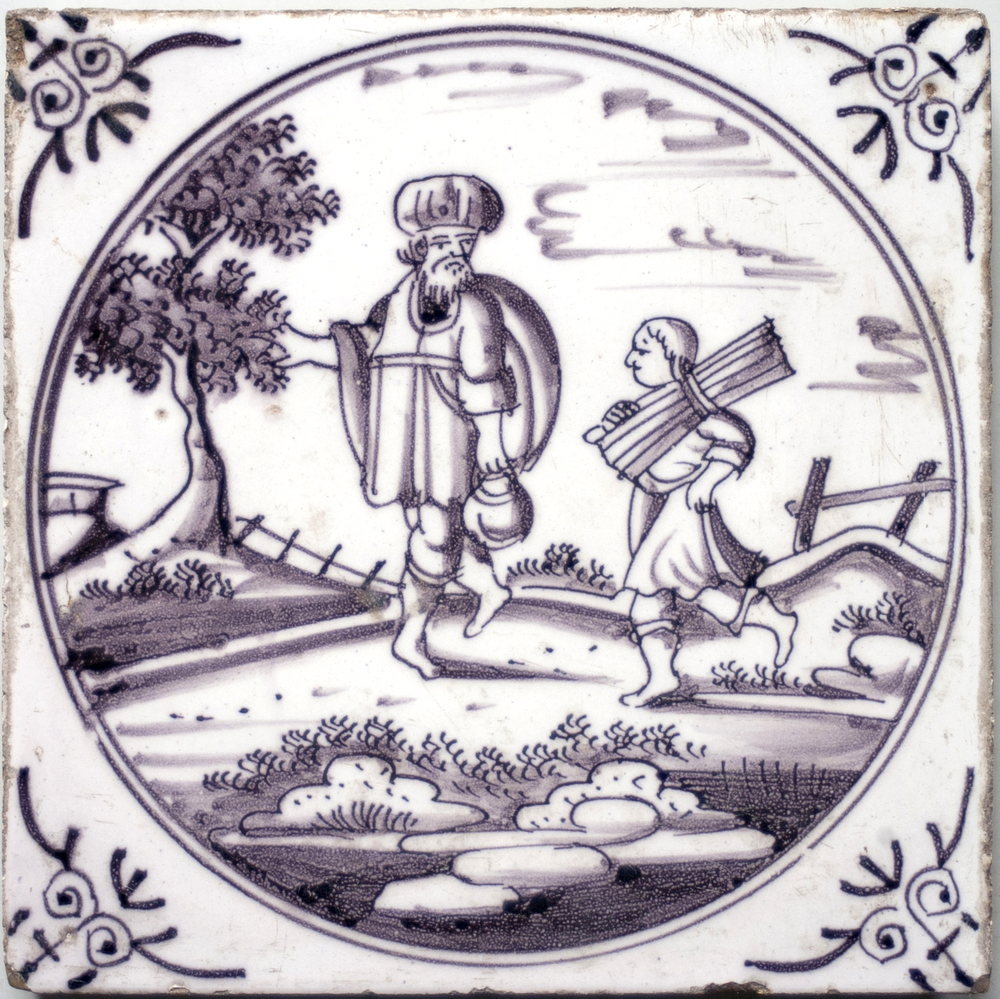 tegel van keramiek met tinglazuur, voorstellende: Ab...