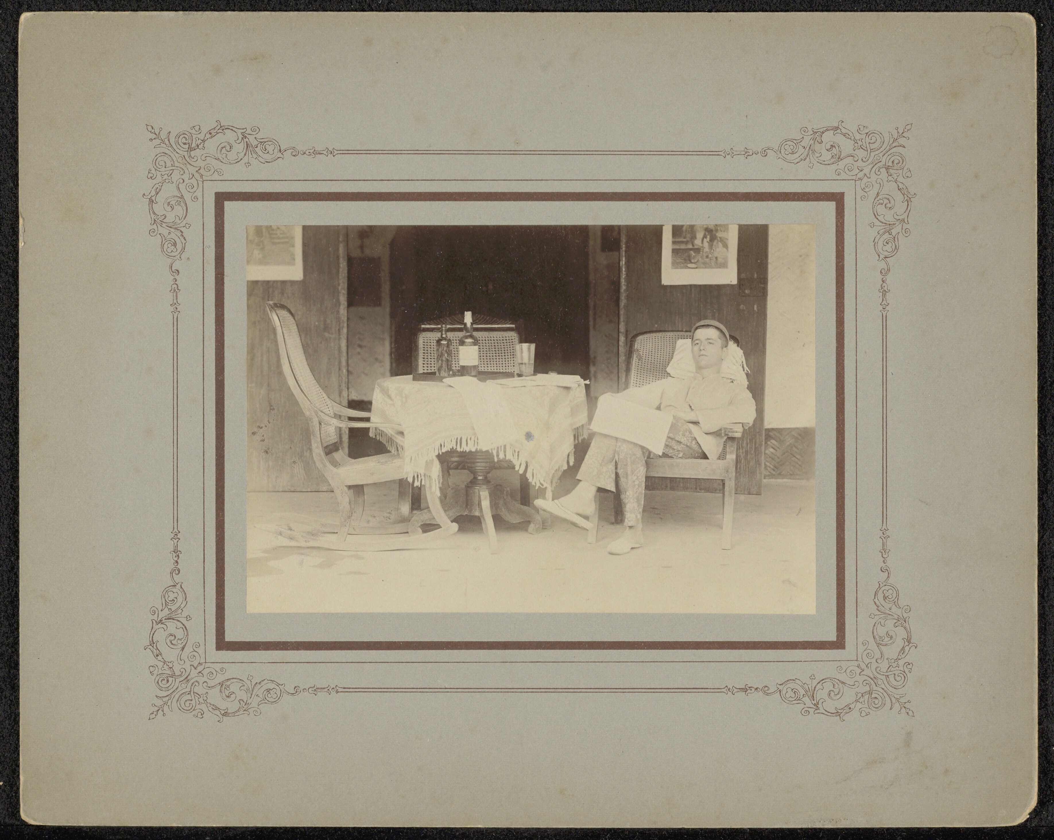 Jongeman in leunstoel op veranda