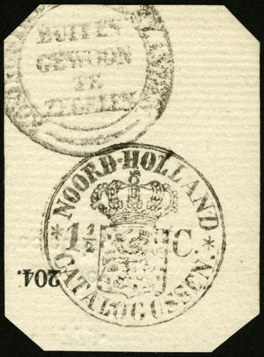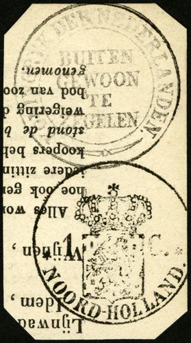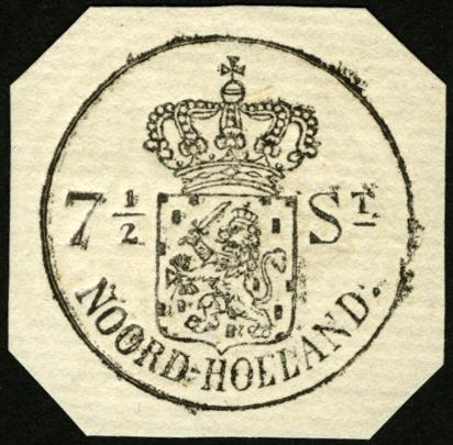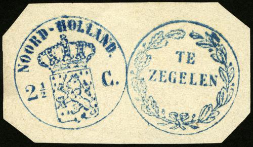 Provinciezegel, blauw stempel, Noord-Holland, 1844