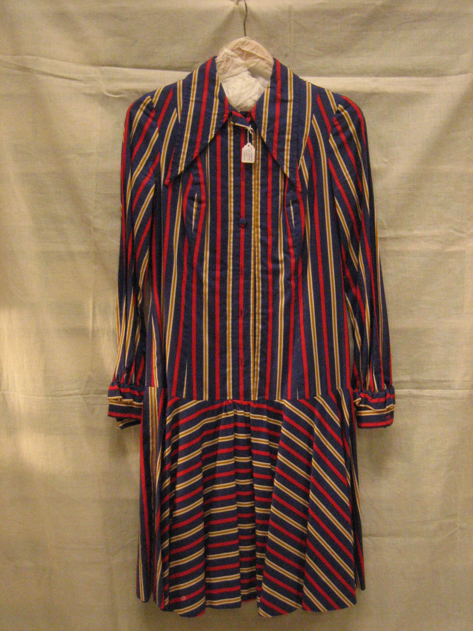 Jurk van rood/blauw gestreepte gemengde katoen, over...
