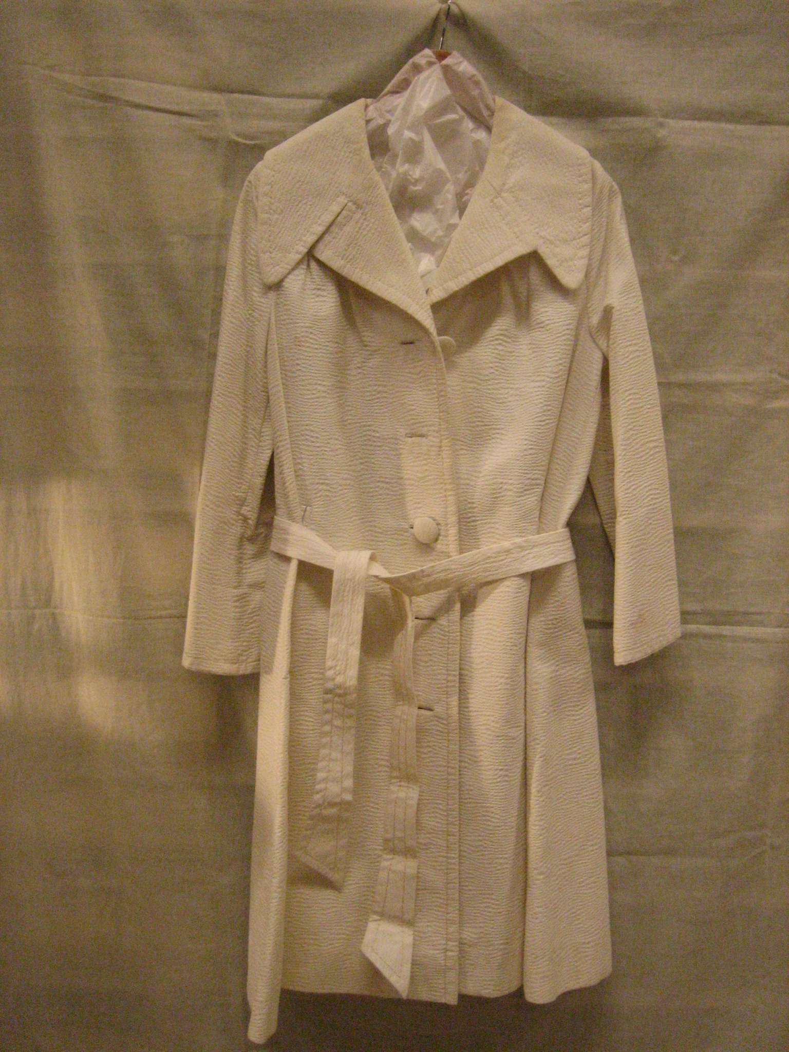 Mantel van witte, synthetische cloquéstof, met rever...