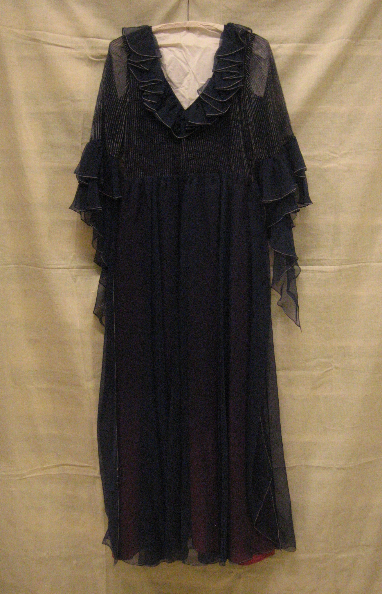 Avondjapon van donkerblauwe synthetische, dunne crêp...