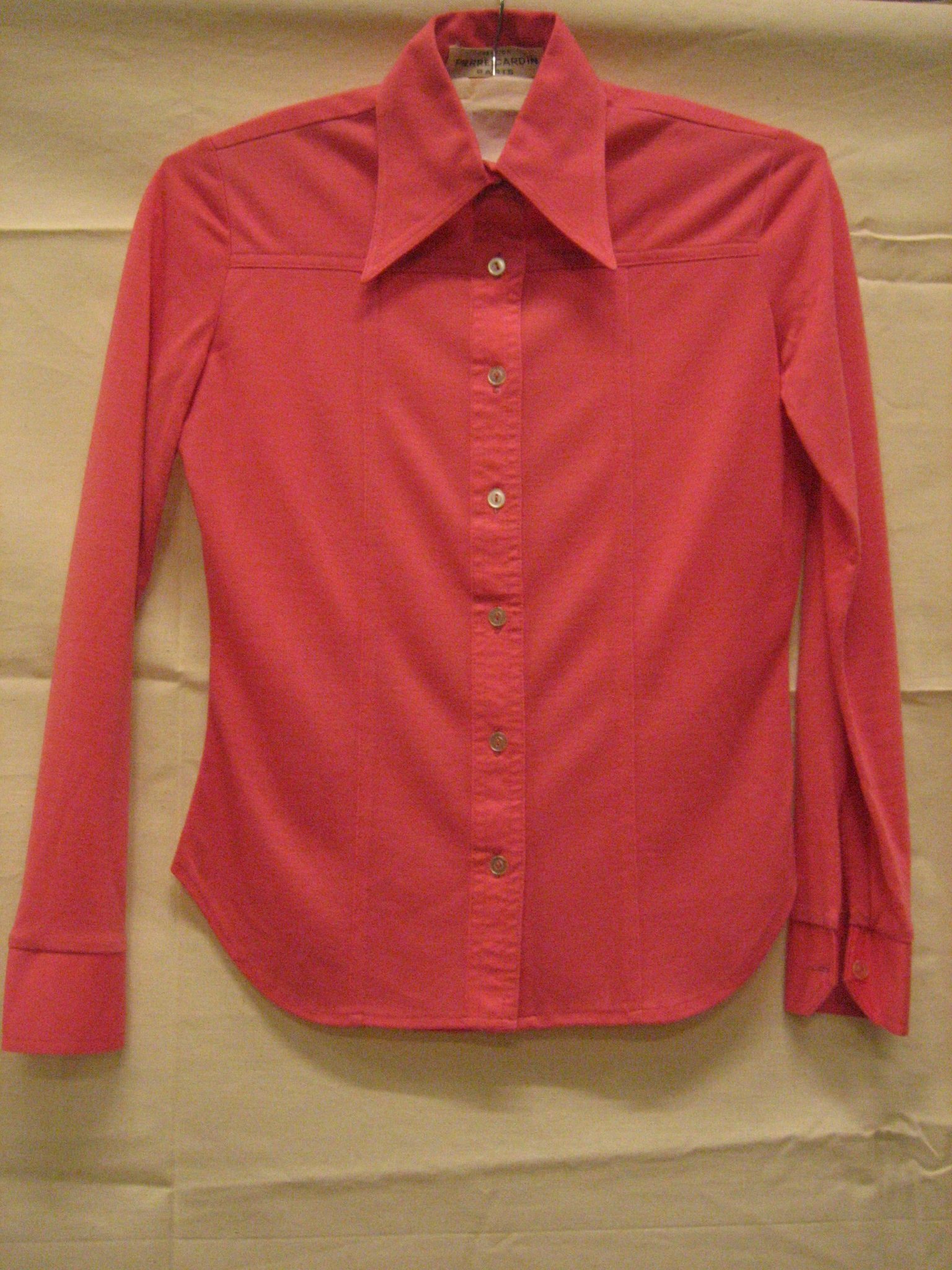 Blouse van roze katoenen tricot met puntkraag