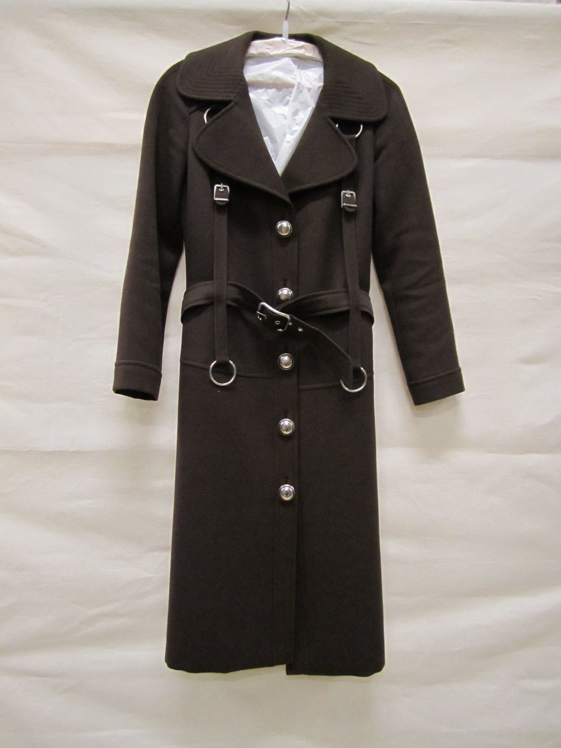 Mantel van donkerbruine wol, rechtvallend aangeslote...