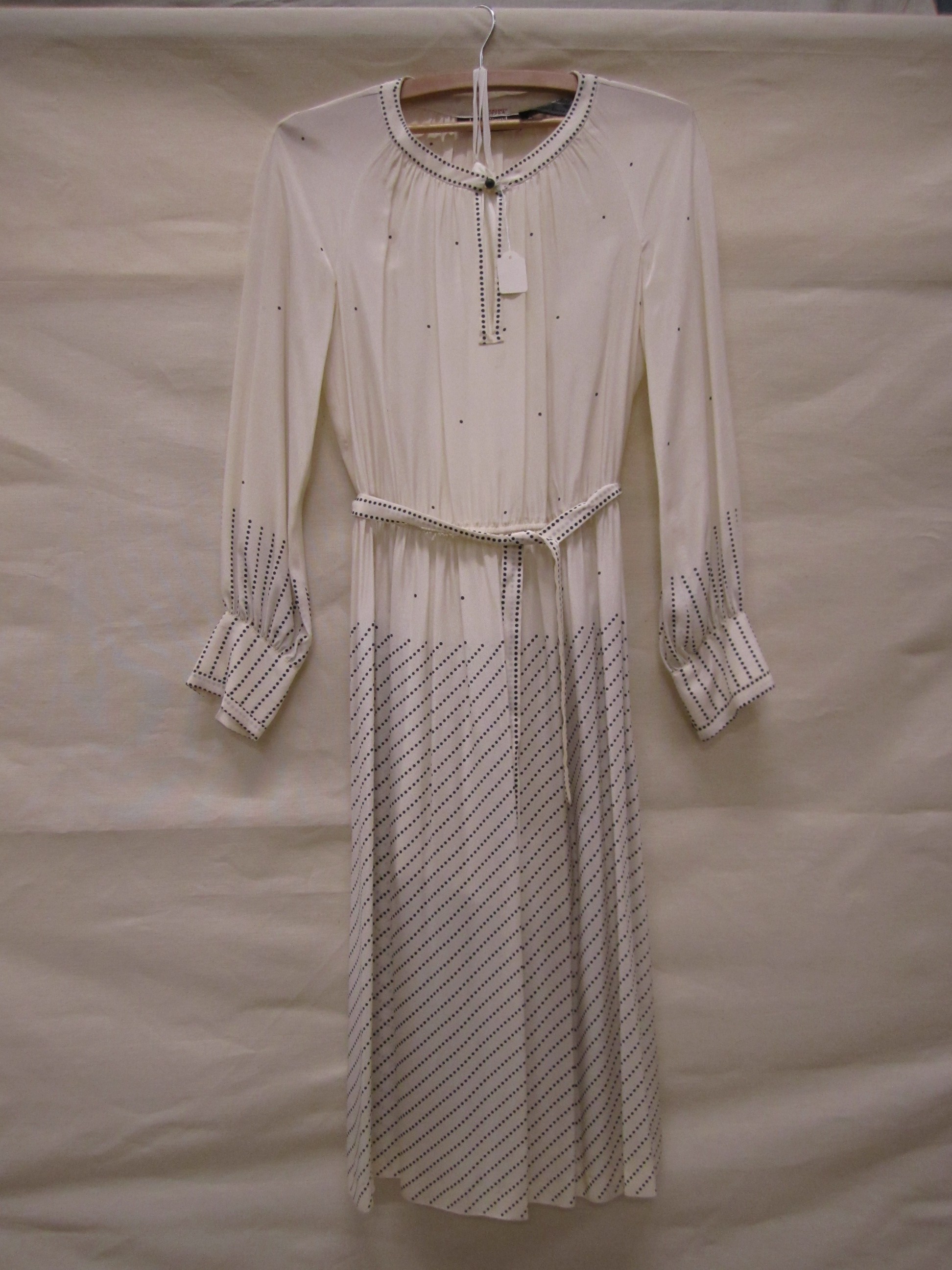 Jurk van witte crêpezijde, bedrukt met donkerblauw s...