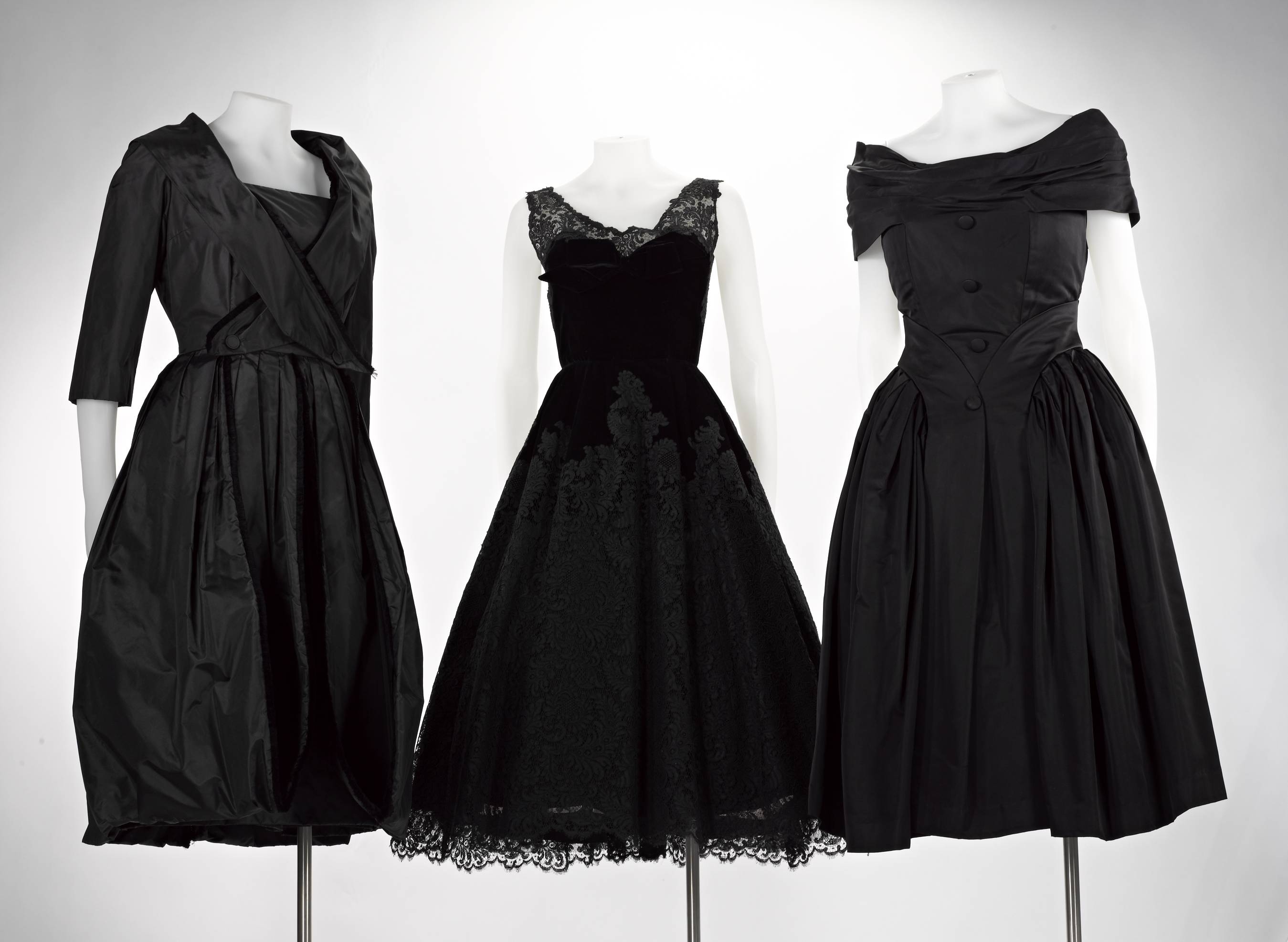 Cocktailjurk van zwarte zijde, glad lijfje met grote...