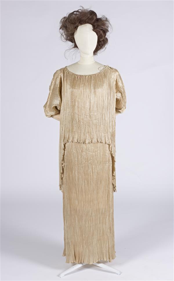 Avondjapon, zogenaamd Peplos-model, van champagnekle...